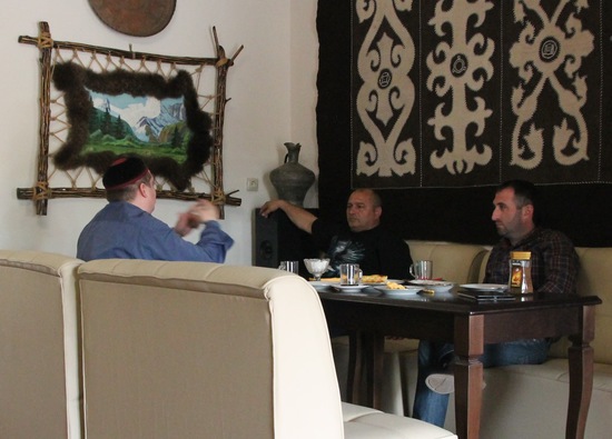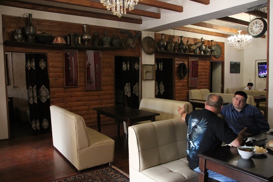 Сегодня мне впервые удалось поговорить с этим интересным человеком. Мы общались всего несколько часов, а у меня впечатления словно мы знакомы всю жизнь. К сожалению, у меня было только пару часов на общение, так как в офисе меня уже ждали посетители, и мне пришлось уехать. Я не только провел время в хорошей компании, но и увидел новое и интересное кафе в Назрани, в котором очень много старинных кавказских предметов быта, надеюсь это не последняя наша встреча с этим хорошим человеком.